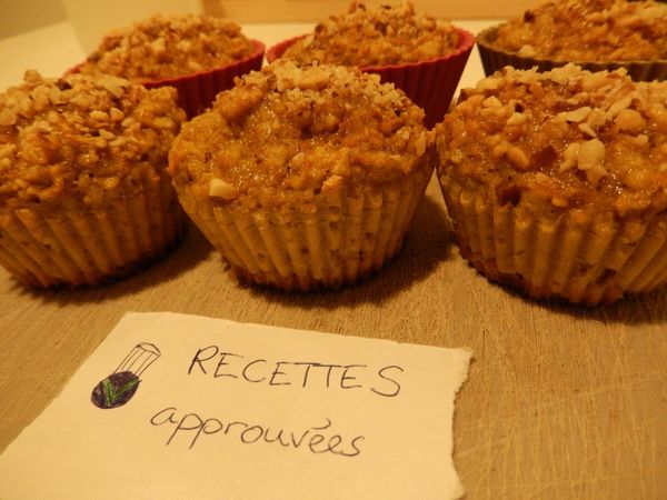 Très bonne recette, facile à faire et très rapide et en plus originale. Les muffins sont très moelleux et les noix concassées donnent un très bel aspect. On a juste envie de tous les dévorer.