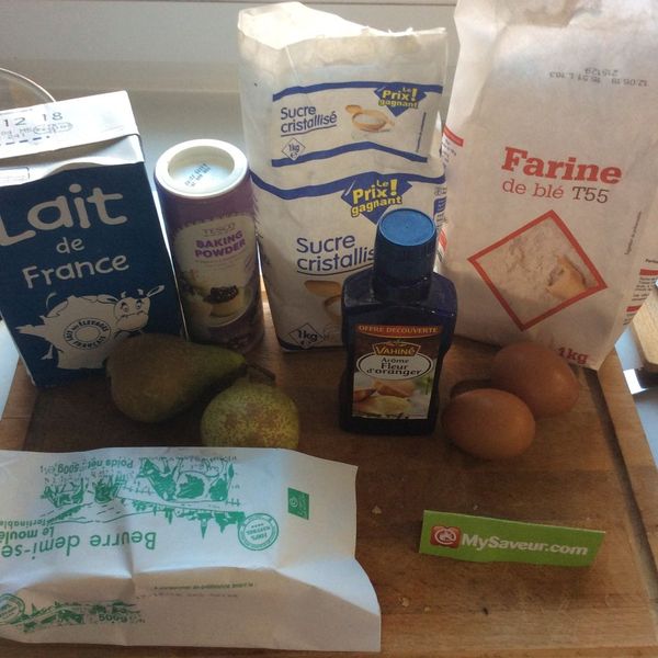Ajouter à l'appareil les dés de poire et la fleur d'oranger. Mélanger puis verser dans des moules à muffins.