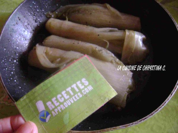 « Un peu de manipulation, mais comme elles sont goûteuses ces endives !... Et la petite pointe de muscade n'y est pas étrangère. Servir avec une bonne purée maison, une côtelette ou une tranche de veau... Aujourd'hui, à 2, il n'en reste plus : nous avons notre quota de légumes. »