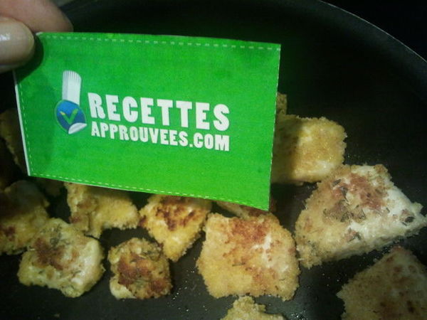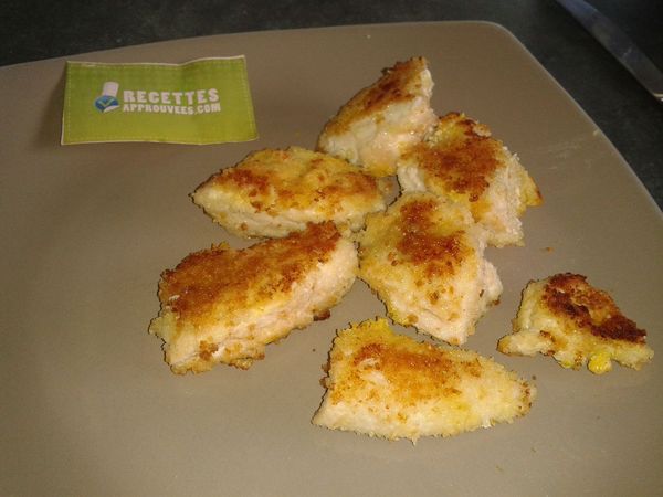 Recette très simple à faire. Seul bémol, je n'ai pas su quoi faire de mon huile d'olive. La cuisson est parfaite et le plus de la recette est la chapelure aux herbes de Provence. Cela donne une vraie touche d'originalité aux nuggets. A refaire sans hésiter.