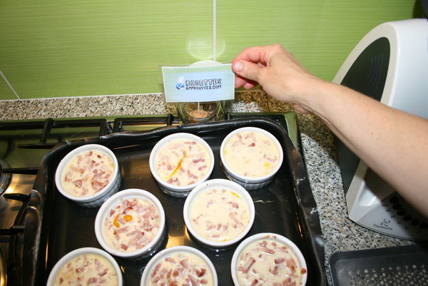 Cuisson 10 mn à 180° au bain marie : on aurait dit qu'on mangeait un oeuf à la coque, c'était très bon. - 15/20