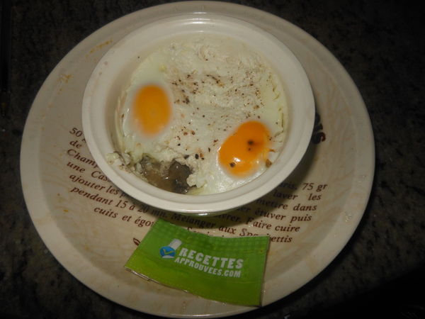 Le fait que les champignons (congelés pour ma part) non pas été rissolés, ils ont rendus un peu d'eau et ça a faussé ma cuisson, j'ai pensé que mes oeufs n'étaient pas assez cuits, j'ai prolongé, et au final, les oeufs étaient trop cuits, et y'avait toujours de l'eau en surface. Je pense que Cindy G du 1er commentaire n'a pas dû avoir ce genre de problème!!!!!!!!