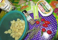 - 250 g de pommes de terre en rondelles cuites dans un bouillon de légumes
