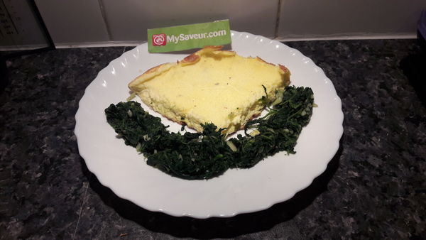 Servir l'omelette soufflée accompagnée de la tombée d'épinards.