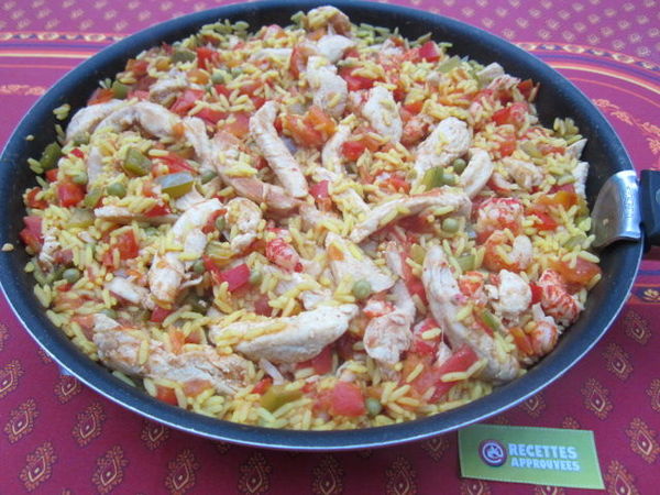 Cette recette est très bonne. Le goût du poivron est très présent. Plat très complet et assez rapide.(par contre les 6 dl d'eau sont un peu juste, je pense plutôt a 60 dl). Pour ma part je rajouterai des moules.