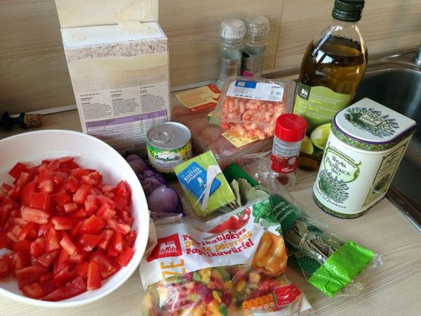 J'ai divisé les quantités de moitié afin d'obtenir un plat pour deux personnes. Résultat un peu mitigé pour ma part, ça manquait d'épices et de chorizo. Mais bon, pour un plat express ce n'était pas mal.