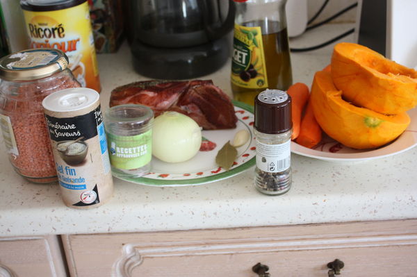 Par contre, j'ai fait cuire plus longtemps afin que les lentilles s'écrasent bien et les légumes soient bien cuit !