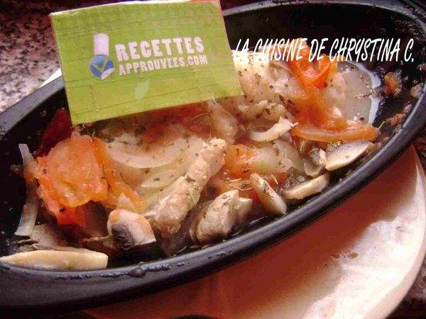 J'ai utilisé ma papillote mastrad pour réaliser ce plat, tout d'abord septique quand au goût, mais agréablement surprise car le goût est là malgré une cuisson en papillote.. L’assaisonnent proposé a suffit, j'ai juste rallongé un peu la cuisson.