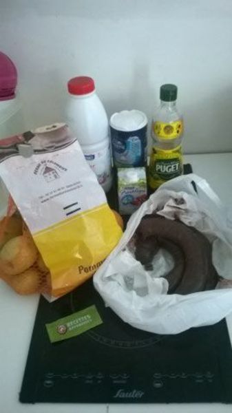 J'ai divisé par deux les quantités, j'ai cuisiné ce bon petit plat pour mon chéri, je n'aime pas le boudin mais il a bien aimé, juste préféré gratiné le dessus de la purée.