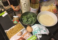 Mélanger ensemble les pâtes, les épinards et la sauce. Rectifier l'assaisonnement si nécessaire.