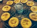 Les miens n'ont pas vraiment pris de couleur et les laisser plus longtemps aurait brûlé la pâte. Les ayant fait cuire dans un moule en silicone, je n'ai pas voulu mettre le grill, le résultat était très bon avec une préférence pour le légèrement tiède.