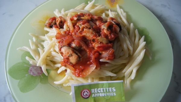 Nous avons beaucoup aimé cette sauce aux moules, pour être top il manquait une p'tite touche de crème pour diminuer l'acidité de la sauce tomates.