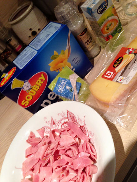 Recette on ne peut plus basique. Si le fait de gratiner les pâtes au jambon avec du fromage à raclette est une excellente idée, cela manque cruellement d'épices (poivre, piment d'Espelette, de Cayenne...) et d'herbes (ciboulette, persil, basilic...). Et puis pourquoi pas ajouter des champignons pour en faire un plat complet.
