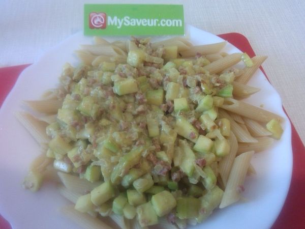 Très bonne recette, bien goûteuse. Ça change des simples pâtes aux lardons et à la crème. Le curry change tout. J'ai coupé la courgette en petits cubes, elle a cuit parfaitement et s'est liée aux autres ingrédients. Grâce à cette recette, c'est facile d'en faire manger à ceux qui ne l'aime pas.
