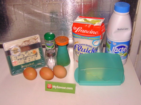 Dans le bol d'un robot, rassemblez le roquefort coupé en 4, le lait, la farine, les œufs, un peu de sel et du poivre. Mixez par impulsions courtes, sans chercher à obtenir une préparation lisse ou homogène. Incorporez la ciboulette ciselée.