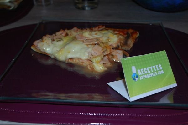 Simple et bonne. Les herbes de Provence rehaussent bien cette pizza par contre nous aurions mis un peu moins de blanc de poulet et un peu plus de mozzarella!