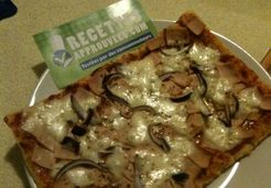 Recette simple, très rapide et trop bonne, nous avons adorés les oignons et les herbes de provences qui réhaussent cette pizza !
