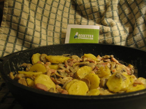 Une bonne association des pommes de terre, champignons et des lardons. Par contre, je ne vois pas l'intéret de mettre de la crème. Même sans cela ca aurait été bien bon.