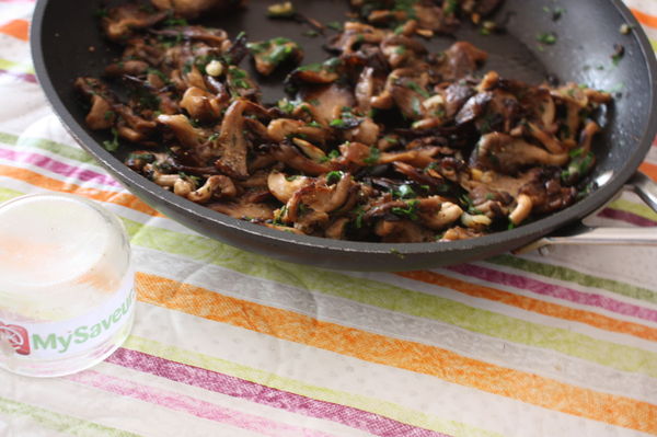 Dans la poêle, verser une càs d'huile d'olive puis les pleurotes. Les faire cuire pendant une vingtaine de min en remuant de temps en temps.