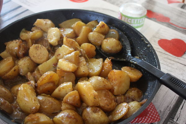 J'ai utilisé des pomme de terre nouvelles, c'est sûr ce n'est pas aussi bon que mes recettes sautées au beurre. Mais plus fade mais bon quand même. Par contre, j'ai dû doubler le temps de cuisson.