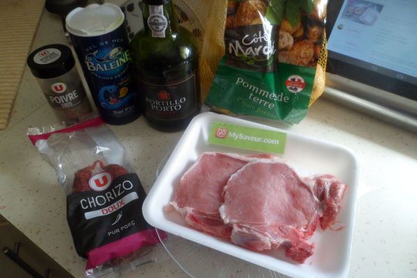 Très bonne recette, les pommes de terre avaient un bon goût de chorizo et un petit gout moelleux amené par le porto. J'aime un peu moins la cuisson des côtes de porc en cocotte ; je les préfère grillées. Je referai cette recette avec des cuisses de poulet ou une rouelle.