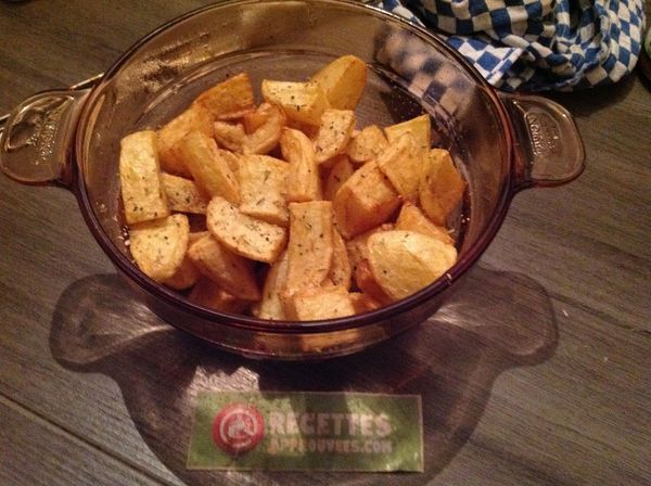 La cuisson à l'eau avant de faire revenir les pommes est bien. L'ail et les herbes de Provence donnent un bon goût, manque juste des épices.