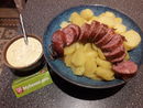 Un grand classique : pommes de terre et saucisse de Morteau ! Mais dans cette recette, la sauce à la moutarde à l'ancienne apporte une touche d'originalité ! La sauce est délicieuse et accompagne à merveille ce plat ! En plus, c'est simple et rapide !