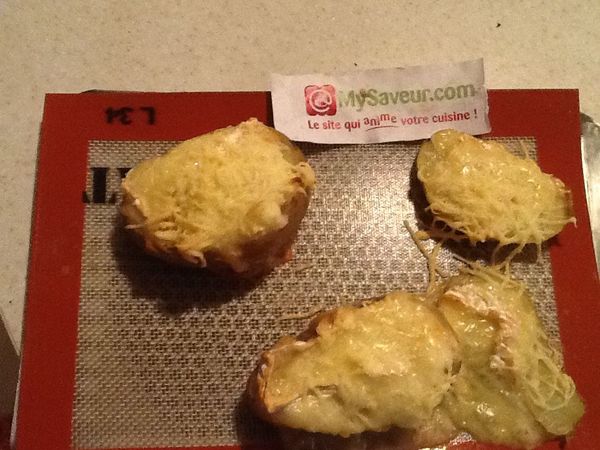 Une fois cuites, couper un petit chapeau et creuser la pomme de terre à l'aide d'une petite cuillère.