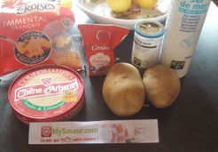Garnir les pommes de terres généreusement. Ajouter une bonne tranche de coulommiers dessus et parsemer de fromage râpé.
