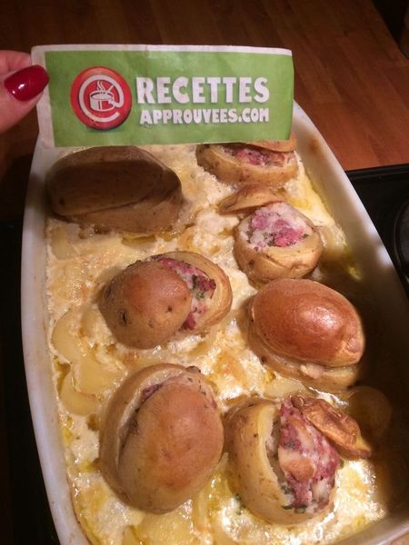Recette simple à réaliser ! Attention par contre au cumin dans la farce !! Pour la photo j'ai dû sauver une pomme de terre, car les enfants avaient déjà tous mangé ! Donc à refaire.