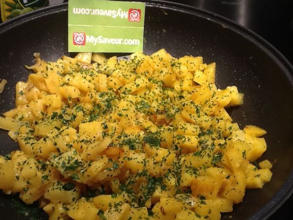 Enlever toutes les graines du piment avant de l'émincer en petits cubes. Peler et couper les pommes de terre en petits cubes.