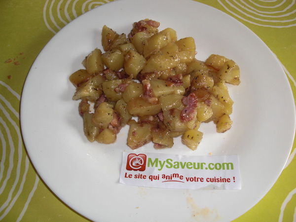 Les pommes de terre sont fondantes et bien bonnes avec les lardons et les herbes de Provence.
