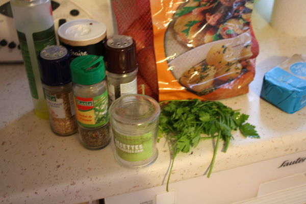 - Sel, poivre, persil, herbes de Provence, ail en poudre