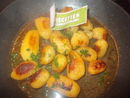 J'ai fait le choix d'enlever la peau et ce n'était pas une bonne idée, la pomme de terre a accroché à la poêle. Les herbes de Provence, je n'ai pas beaucoup aimé.