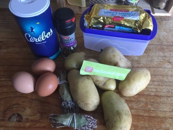 Une recette très classique, celle-ci ne comporte pas d'originalité à part les herbes pour l'eau de cuisson. Elle manque de détails (par exemple le beurre, combien ?). L'ensemble est bon mais franchement tristoune à manger... La forme ronde ne leur permet pas de dorer comme on aimerait.