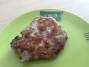 Quand on tombe sur un morceau de lard c'est super bon, ça apporte du goût à la viande. Par contre, une tranche au vu de la taille des côtes c'est insuffisant, un peu de poivre aurait bien rehaussé le tout. La viande est bien moelleuse grâce à la panure à base de lait.