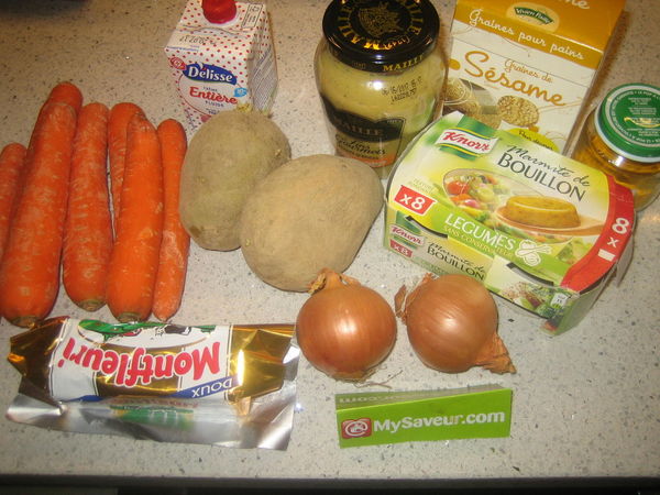 Une bonne soupe de carottes, originale avec l'ajout de moutarde et les graines de sésame.