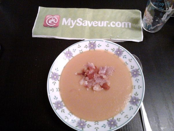 Une bonne soupe avec une texture agréable. On a bien aimé le croustillant du jambon qui parfume bien la soupe. On la refera.