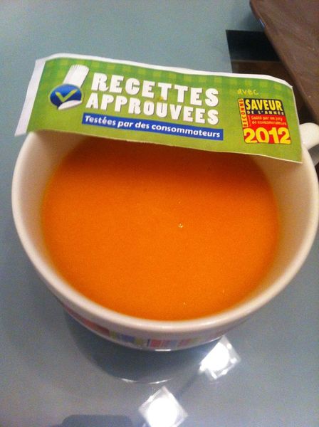 La soupe est bonne mais classique; elle n'a rien d'exceptionnel. Assez relevée à cause de la dose de bouillon et du sel; je reste circonspecte quant à l'utilisation de ces "dits-bouillons" et préfère les épices traditionnelles mais cela peut dépanner de façon ponctuelle (enfin, question de goût!)