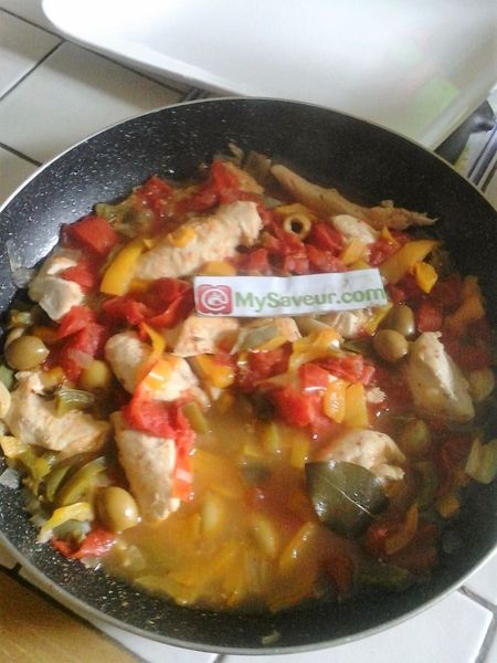 Je n'ai pas mis d'olives dans cette recette car je n'aime pas. Ceci mis à part ce plat avait un très bon goût. Le bouquet garni apporte beaucoup de saveur, relevées encore par le piment.