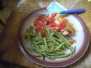Ce jour là, c'est mon chéri qui a cuisiné et le résultat était vraiment succulent!!! La sauce basquaise est divine avec tous les légumes bien fondants et le poulet est bien cuit, bien tendre. Un pur régal!!!