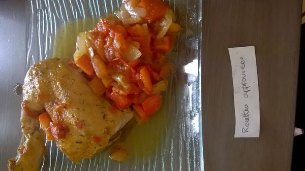 Le poulet est bien tendre et parfumé grâce aux herbes et au poivron. La prochaine fois je mettrai un poivron en plus.