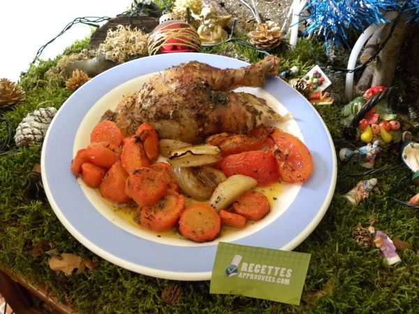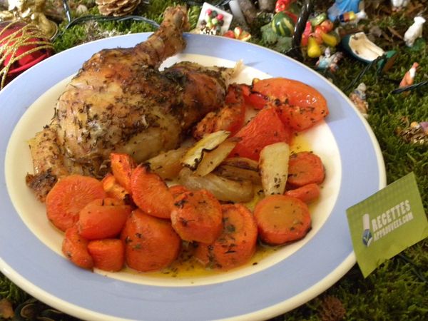 C'est une très bonne recette, le thym et l'huile d'olive parfument bien le poulet qui est bien moelleux et les légumes sont presque confits dans ce bon jus.