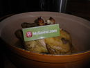 En fin de cuisson, couper le poulet en morceaux et servez avec le pain et l'ail... Bon appétit !