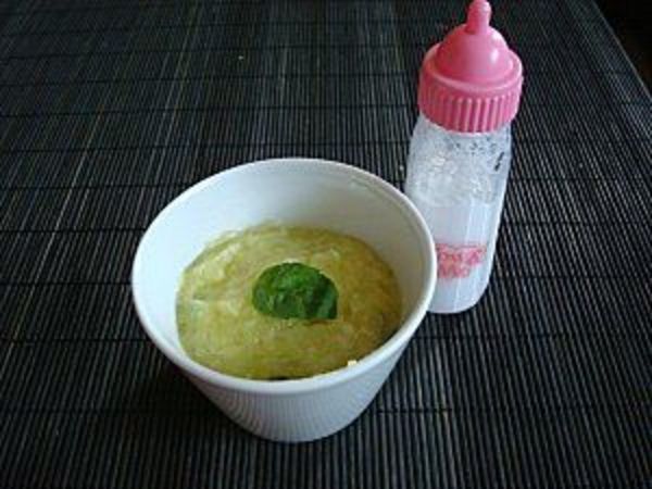 Le basilic et le parmesan se marient bien et donne un goût original à cette purée de courgette.