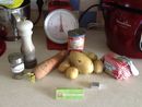 Verser dans le bol du Thermomix les pommes de terre, les carottes, le cube, les tomates concassée, le thym et poivrer (je n'ai pas salé, le cube suffit pour ma part).