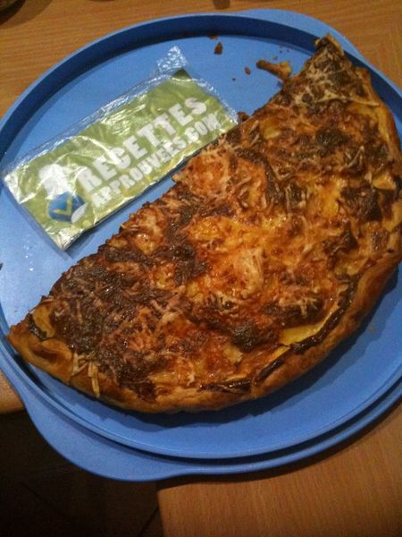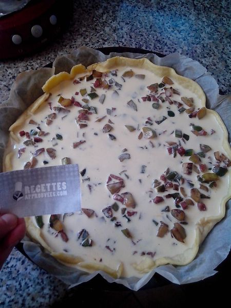 La pâte était archi cuite....dure du coup. Je pense qu' il ne faudrait pas précuire la pâte. Sinon la garnitre est pas mal. On peut largement mettre deux cuillères de moutarde sur la pâte.