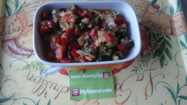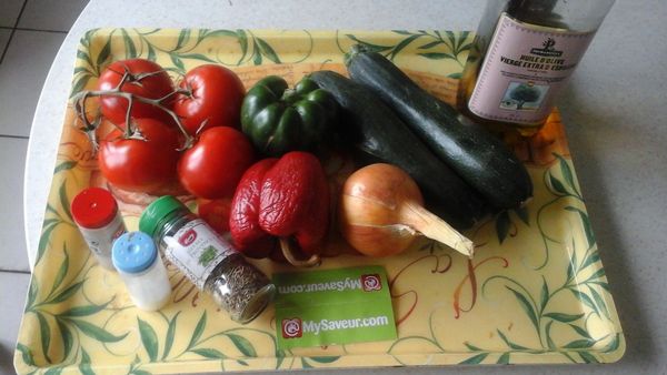 Faire revenir l'oignon, rajouter les poivrons et les courgettes.