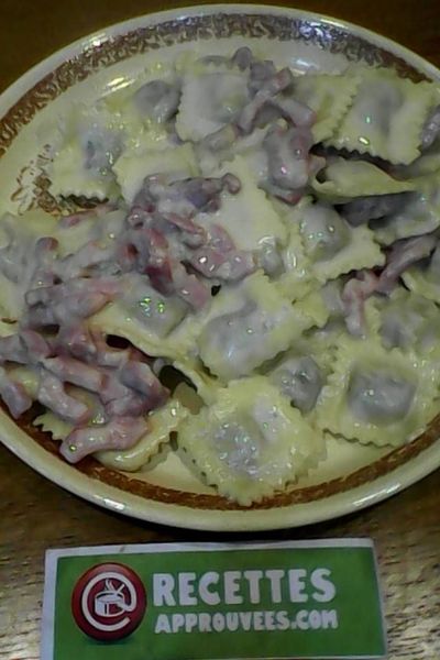 Une recette vite préparée, idéale pour un soir. J'ai utilisé des raviolis au fromage et avec la sauce au gorgonzola cela se mariait très bien. Nous avons bien aimé ce plat, toutefois il ne faut pas en manger de trop car cela devient un peu écœurant sur la fin.