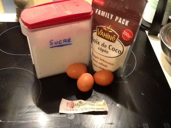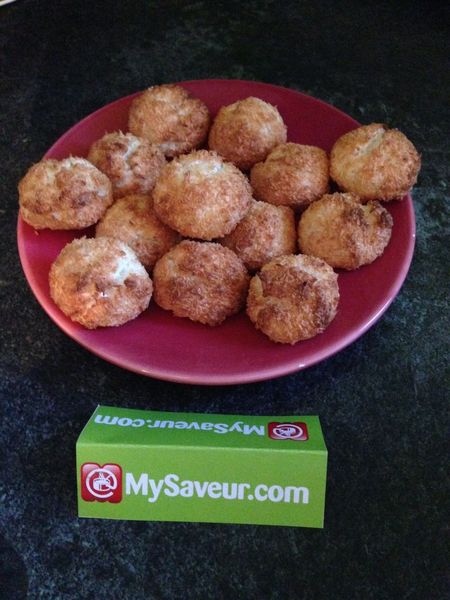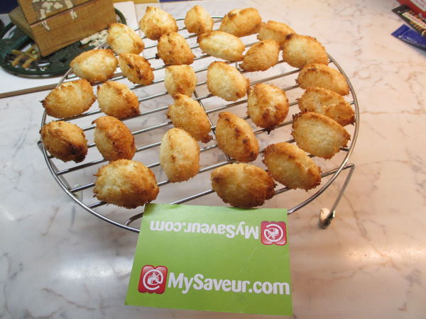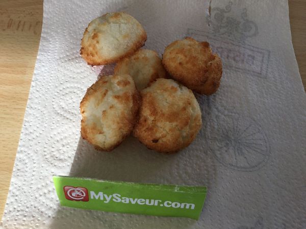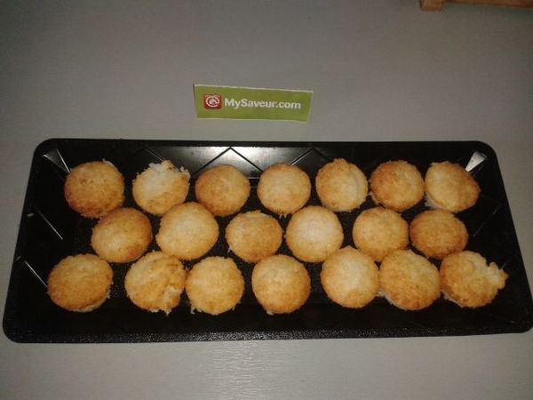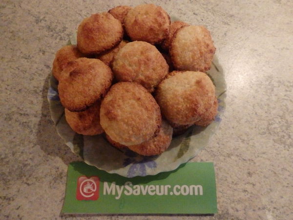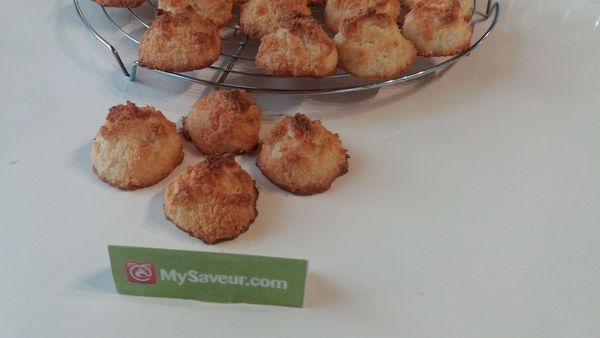 Une recette classique, le goût de la noix de coco est bien présente. La prochaine fois je prolongerai un peu la cuisson car les gâteaux étaient un peu mous et pas aussi croquants que je l'espérais.